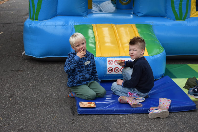 Het opzetten van het feestterrein is jaarlijks een saamhorige activiteit. Behalve het huren van een springkussen voor de kinderen hoefde er niets aangeschaft te worden voor de aankleding. Tenten, tafels en stoelen, verlichting, verwarming: alles was in eigen beheer van de