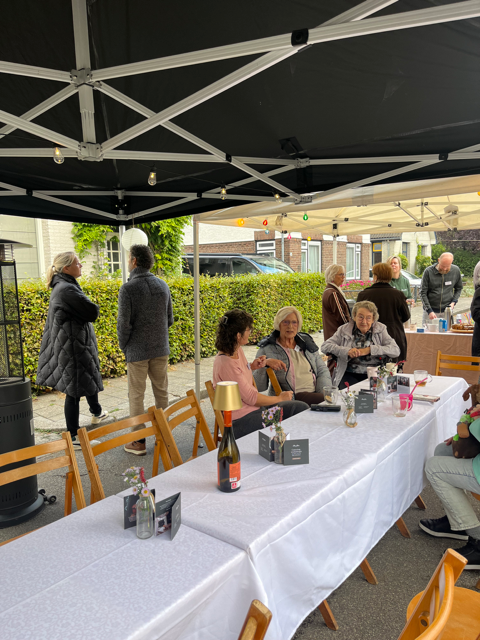 Het buurtfeestcommité 2025 bestond dit jaar uit Laura en René, Henriette en Gijs, Ella en Willem. Begin juni hadden wij de koppen digitaal bij elkaar gestoken en werd de datum bepaald op Burendag 27 september. Tijdens de eerste vergadering bleek al gauw dat Gijs en Henriette alles in huis hadden om er een geslaagd BBQ feest van te kunnen maken, compleet met het ontwerpen van de uitnodiging, de aankleding van de tafels en de complete verzorging van de BBQ. Laura en René namen het administratieve deel en de boodschappen voor hun rekening.